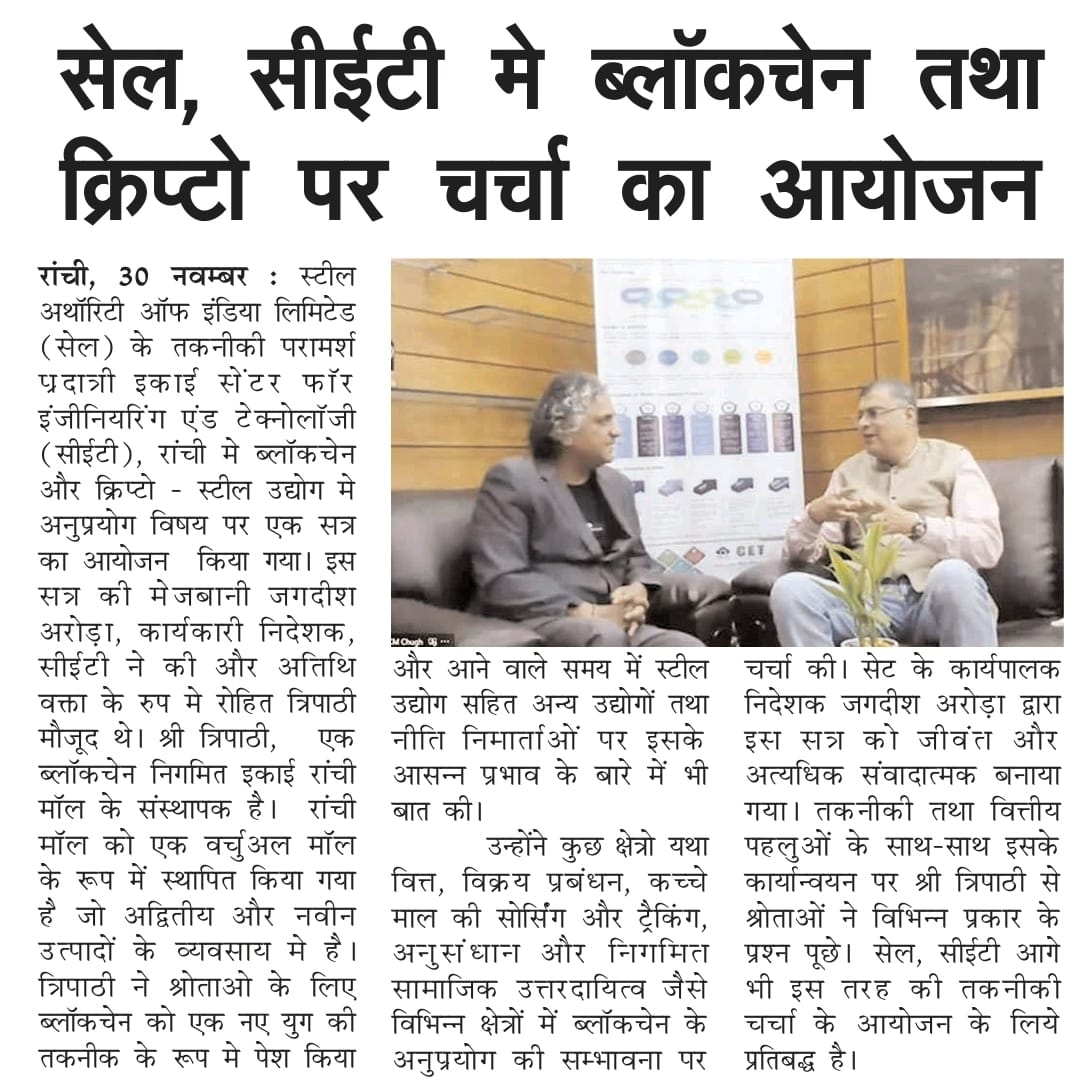 Founder RanchiMall talks on the use case of blockchain and crypto in steel industry with SAIL ED Jagdish Arora.jpeg